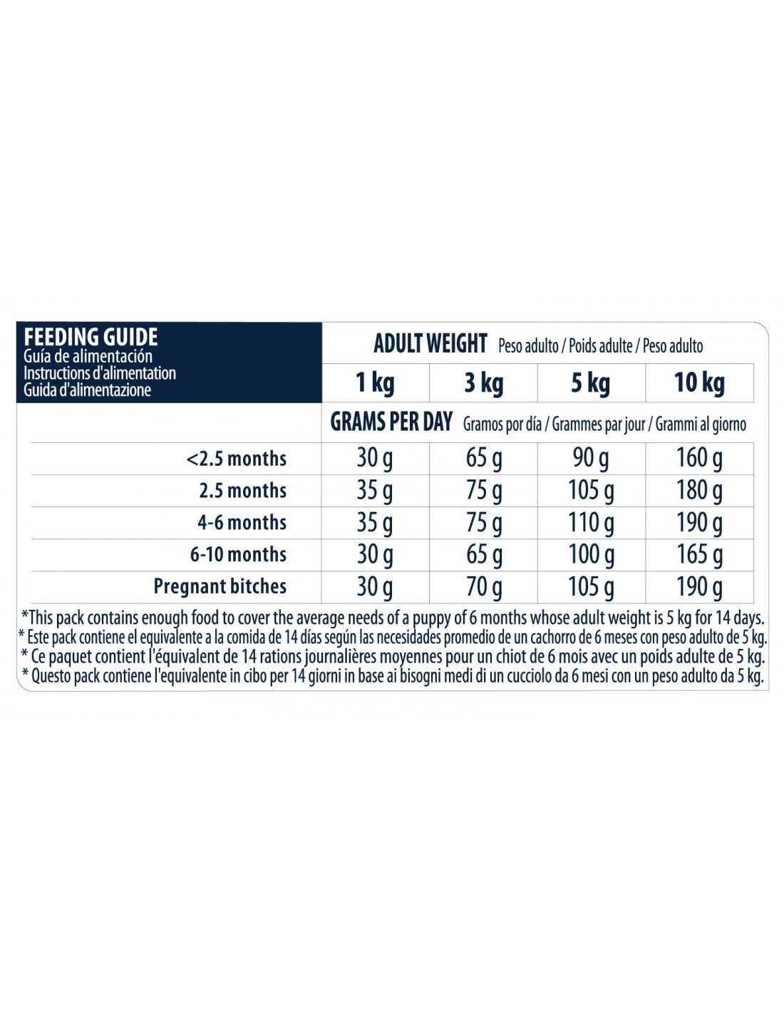 | 5 kg | 90 gr | 105 gr | 110 gr | 100 gr |