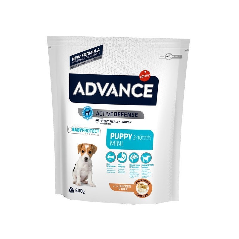 Advance Puppy Perros Mini está especialmente indicado para cachorros de raza pequeña de 2 a 10 meses de edad. Además, el tamaño reducido de su croqueta se adapta a la mandíbula de los cachorros de tamaño pequeño.
