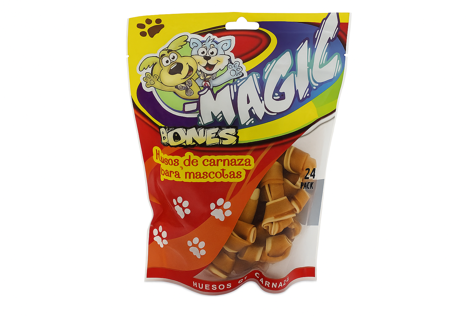 Los huesos masticables para perros y gatos son el premio ideal para consentir y cuidar a tus mascotas todos los días. Están elaborados con irresistibles sabores a leche, pollo y carne, que estimulan su instinto natural de masticar y proporcionan una experiencia deliciosa y saludable.