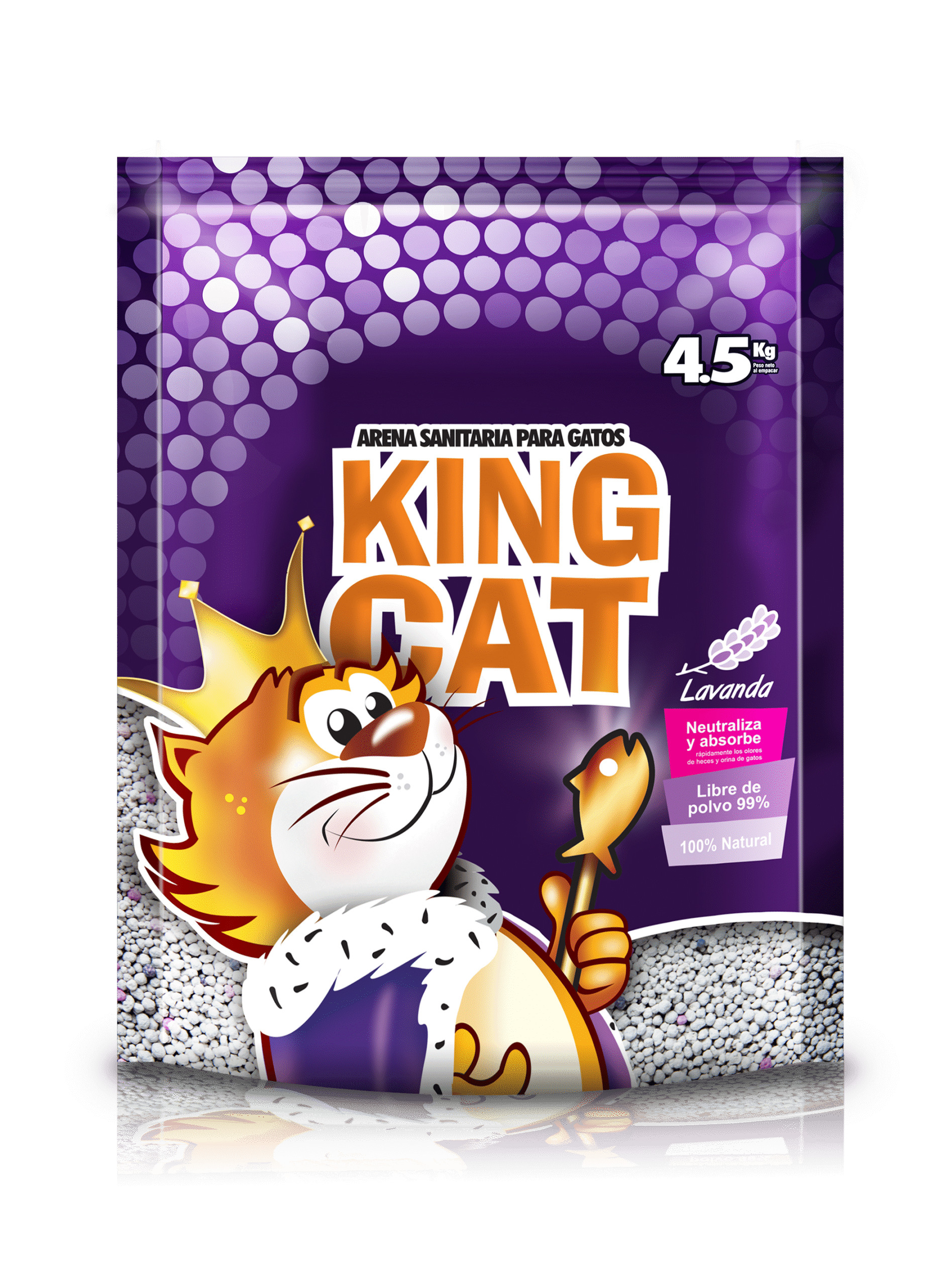 La Arena Sanitaria King Cat Lavanda combina calidad, rendimiento y frescura natural para garantizar la mejor higiene en el arenero de tu gato. Elaborada con Esmectita de alta pureza, proporciona una aglomeración rápida y firme, facilitando la limpieza y reduciendo el desperdicio de arena.