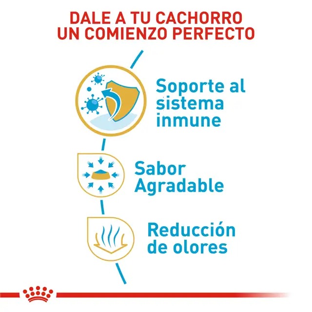 - Refuerzo del Sistema Inmunológico: Mientras crece, su cachorro experimenta grandes cambios y nuevos descubrimientos. Durante este periodo clave, el sistema inmunológico del cachorro sigue desarrollándose. Royal Canin Chihuahua Cachorro ayuda a reforzar las defensas naturales de su cachorro gracias a un exclusivo complejo de antioxidantes incluyendo vitamina E.