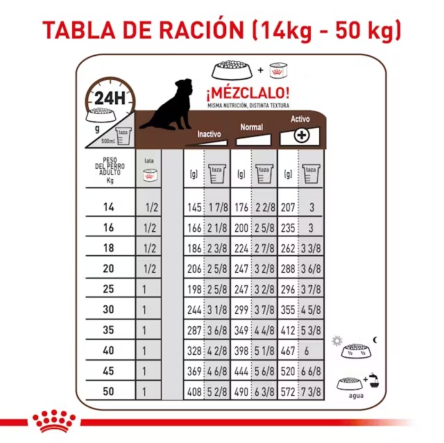 Contiene 3237 kcal EM/kg (calculada), 240 kcal EM/taza.