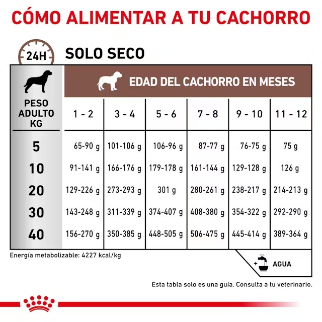 Esta fórmula de alta digestibilidad está enriquecida con un contenido equilibrado de fibras solubles e insolubles, incluidos los prebióticos, para ayudar a mantener una digestión y un tránsito saludables Esta fórmula de alta energía contiene niveles específicamente adaptados de nutrientes, como proteína y calcio, para cubrir las necesidades nutricionales de crecimiento de tu cachorro para un desarrollo saludable.
