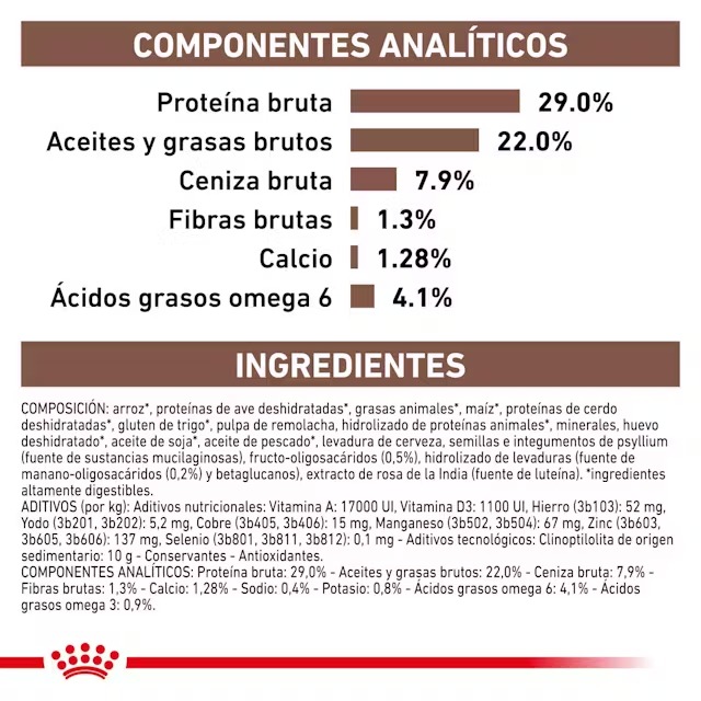 Como parte de la gama ROYAL CANIN® Veterinary Health Nutrition , solo debes dar este producto a tu mascota si te lo recomienda un veterinario. La transición de tu mascota de una dieta a otra debe realizarse de forma lenta y gradual durante un período de 7 a 10 días.
