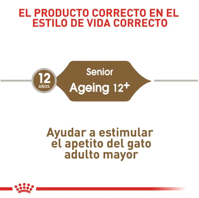 Royal Canin Gatos Senior Envejecimiento 12+ es un alimento completo y equilibrado para gatos mayores de 12 años.