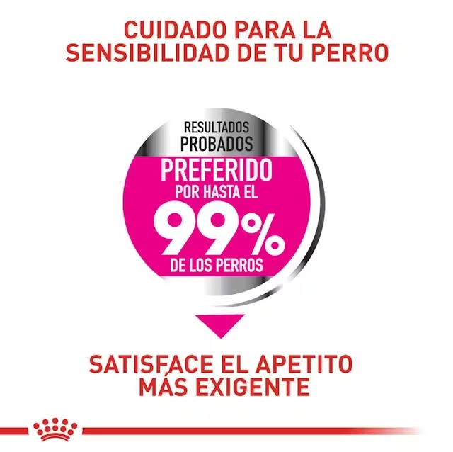 La elección de los perros lo confirma: estudios científicos internos muestran que hasta el 99 % prefirieron Royal Canin Perros Exigentes Mini.