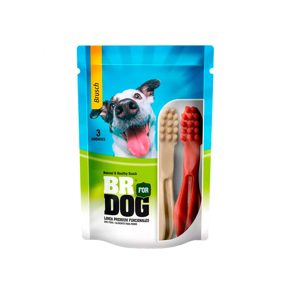 El Snack BR Perros Brusch x 3 Und es un suplemento alimenticio premium diseñado para perros adultos de todas las razas y tamaños. Su textura y forma están pensadas para ayudar en la limpieza dental diaria, reduciendo acumulación de placa y masajeando las encías mientras tu mascota disfruta de un sabor irresistible.